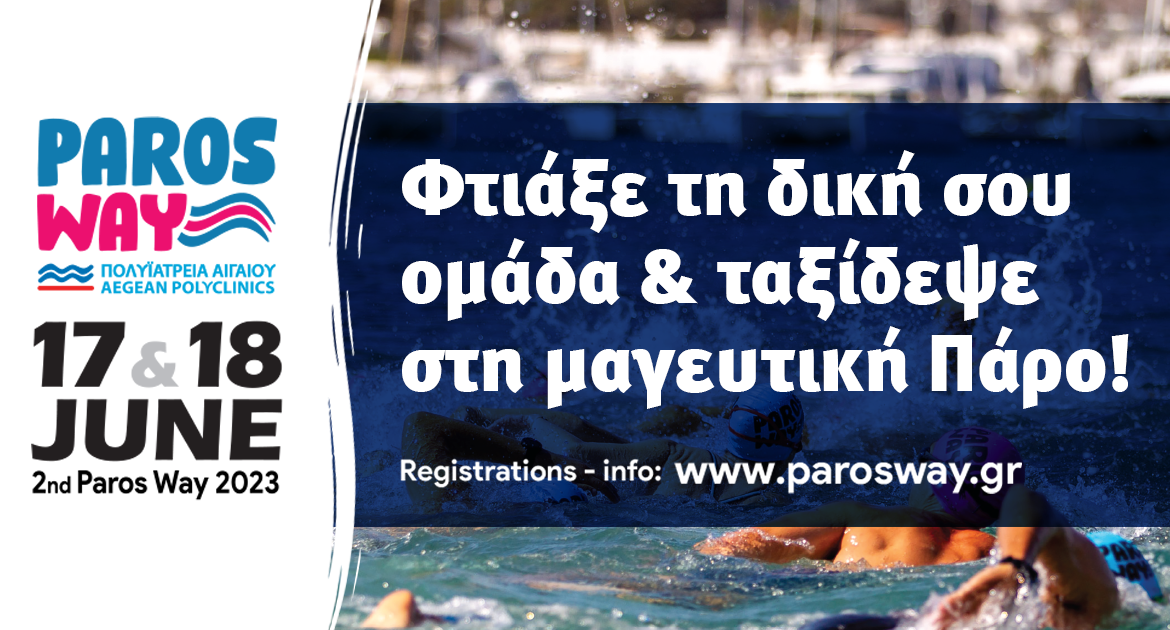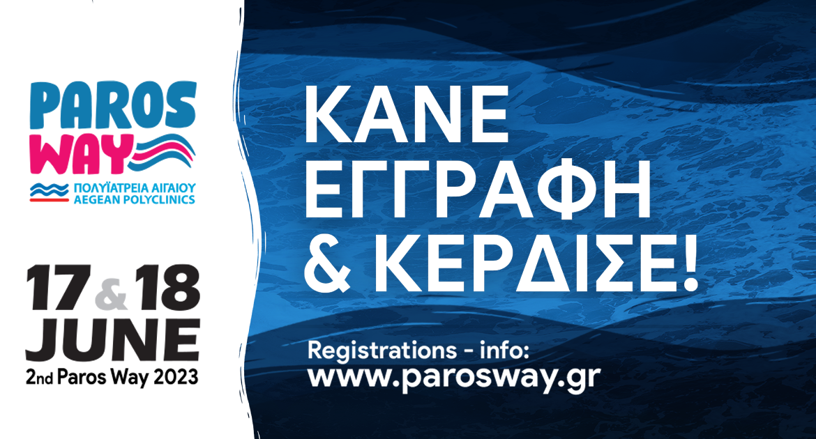 Το διήμερο 17-18 Ιουνίου 2023, στο φημισμένο και πανέμορφο νησί της Πάρου θα διεξαχθεί το 2nd Paros Way – Πολυϊατρεία Αιγαίου, ένα από τα σημαντικότερα αθλητικό - τουριστικά γεγονότα της Ελλάδος.
